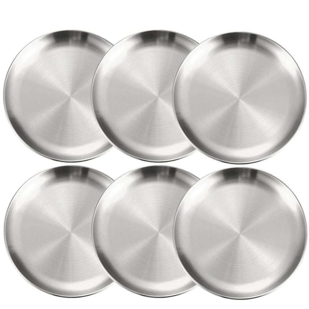 6Pcs Stainless Steel Metal Round Dining Disc Bone Spitting Dish High Quality Shallow Tray Silver BBQ Disc Kitchen Plate