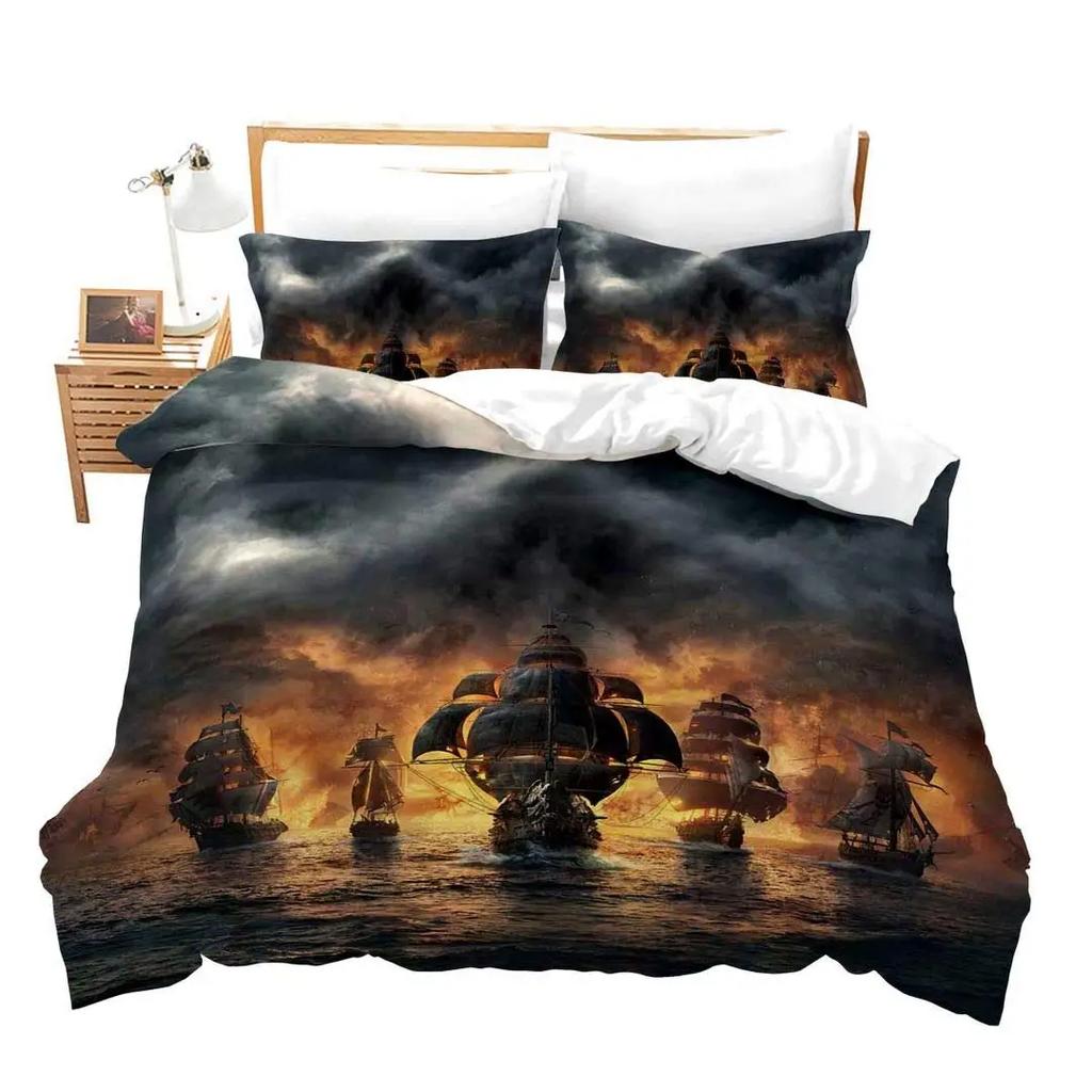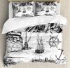 Pirate Sailboat Soft Duvet Cover Nautical Ocean Theme Young Boys Ten Beding Col Style Adult People Beding Set Wave Patern Printed Rom Decor