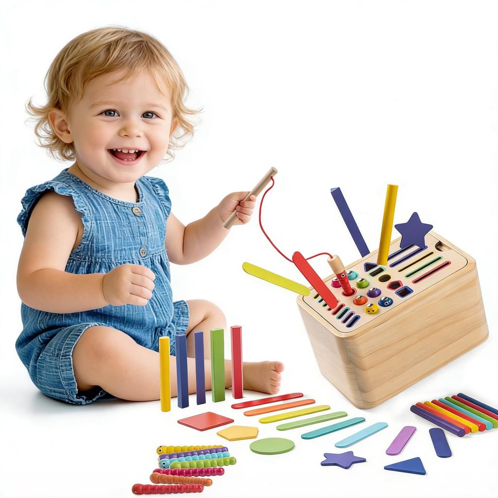 TENGEE Montessori Educational Toy for 3-Year-Olds: Wooden Multi-Piece Fishing Box - Popular Toy for Hand-Eye Coordination, Color, Shape, and Spatial R