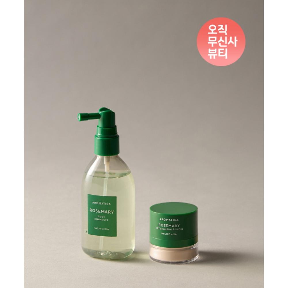 AROMATICA [Exclusive Musinsa Beauty] Rosemary Root Enhancer 100ML + Dry Shampoo Powder 10G is a curated set for root nutrition and volume care. The Rosemary Root Enhancer provides concentrated nutrition to the hair roots, helping maintain healthy and voluminous hair. Rosemary, with its warm properties, helps to swell the old flakes on the scalp, making it easier for them to fall off, while its rich energy contributes to improving scalp condition. The refreshing essential oil blending adds vitality, and lavender and spearmint harmonize the fragrance beautifully.