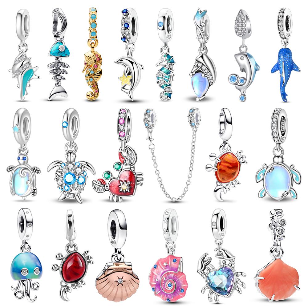 Popular Copper Dolphin Secure Good Chain and Seashell and Jellyfish Dangle Charm Fit Bracelet Fine Beach Party Gift