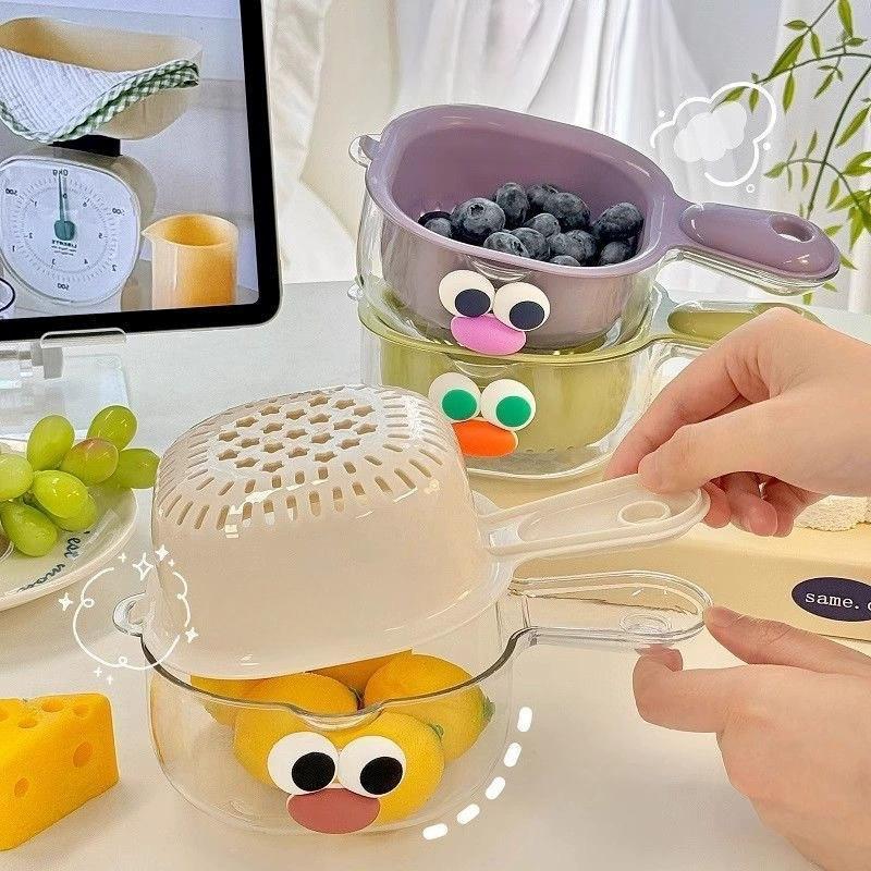 Drain Storage Basket with Handle Double Row Water Basket, Multi-purpose Fruit and Vegetable Filter, Detachable