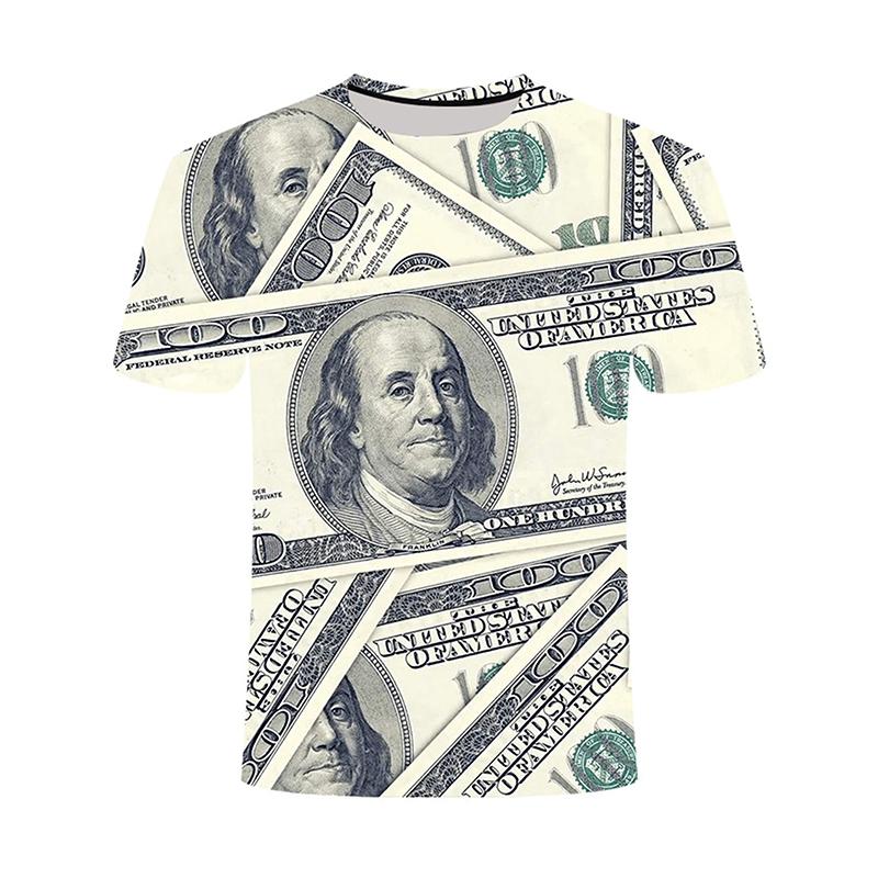 US Dollar 3D Print T-shirt For Men Money Cash Graphic T Shirts Dollar Bill Party Round Neck Tops Cosplay Street Tee Shirts