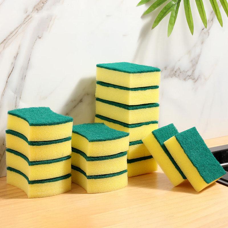 Double-Sided Kitchen Sponge Scrubber with Waist Shape, Multipurpose Dish Cleaning Pad for Tough Stains and Grime