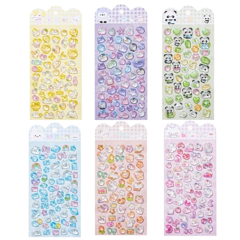 Cartoon Embossed Animal Sticker Waterproof PVC Resin Sticker for Notebook Phone Cover Card Making Kids Room Wall Art