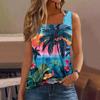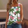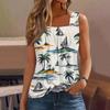 Women's Summer Casual Pleated Square Neck Sleeveless Tank Top Printed T-Shirt