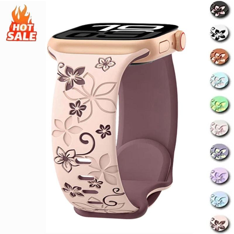 3D Floral Engraved Silicone Sport Strap Band For Apple Watch Ultra 2 49mm S10 11 42 46mm 44 45 41 38 40mm iWatch SE 9 8 7 6 5 3