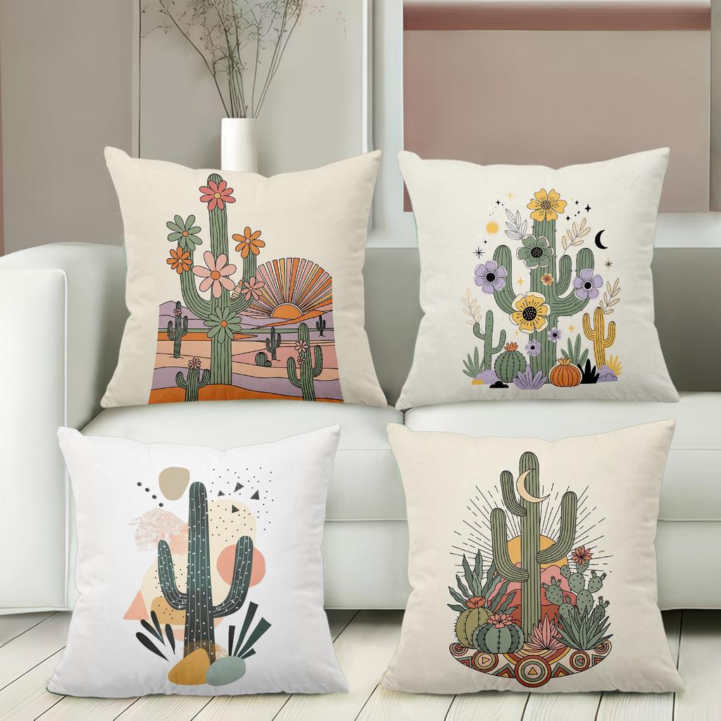 Cactus Floral Patterned Throw Pillow for Home Decor Polyester Pillowcase, Sofa Decorative Cushion Cov Headboard Pillow