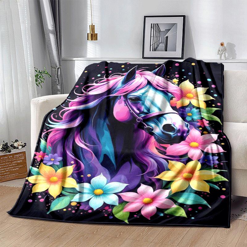 1pc Horse Printing Lightweight Flannel Blanket, Comfortable and Warm Blanket, for Camping Sofa Bed and Couch Office, Suitable for Gift Blanke