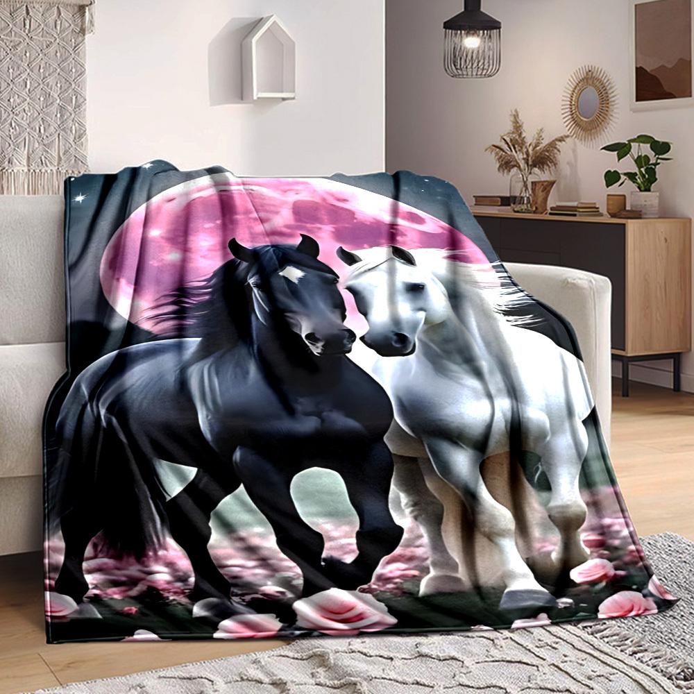 1pc Horse Art Print Blanket, Lightweight Flannel Fleece with Digital Printing, Soft Warm for Sofa, Travel, Camping, Office, Couch, Chair, and Bed, All