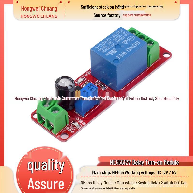NE555 Monostable Delay Module Switch, 12V/5V, Adjustable 0-10 Sec Delay for Automotive Electrical Appliances