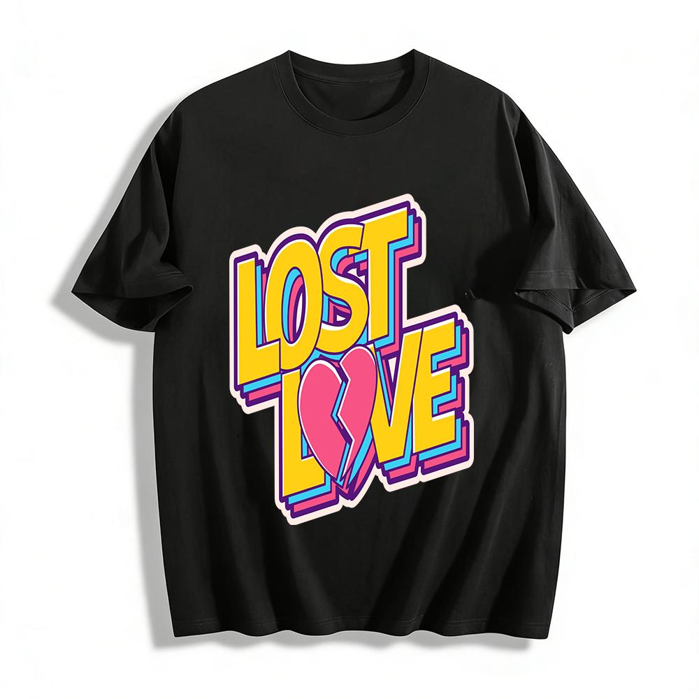 Retro Color Block Lost Love Broken Heart Print T-Shirt Trendy Casual Top For Men And Women Pure Cotton T-shirt