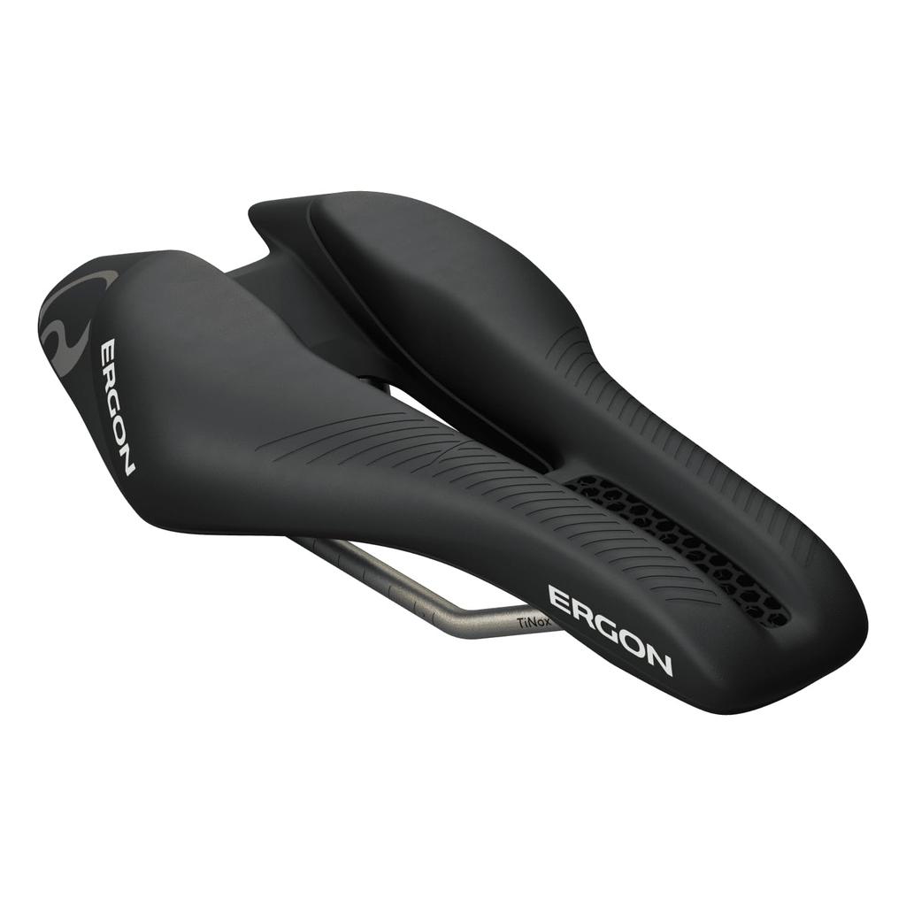 ・Speed lies in the details. From the beginning to the end of research and development, "ergonomics" has always been at the forefront of Ergon's efforts. Leveraging collaborative research with many triathletes, we develop saddles with special designs. Considering gender-specific saddle shapes also plays a crucial role in saddle design. After several years of intensive development with top athletes, the Ergon development team has classified the SR Tri series into two seating types: "front type" and "mid type." This is because in situations with an extreme forward-leaning posture, the seating position is important, and the width of the saddle surface is no longer the issue. With this innovative concept, Ergon has developed saddles with perfect shapes to extract even higher performance. ・SR Tri Front. Developed for riders who tilt their pelvis significantly forward and put their weight on the front of the saddle. Therefore, it has a wide, short, and distinctive V-shaped saddle design. Only the women's model has a highly flexible 3D printed insert in the genital area to achieve excellent pressure relief.