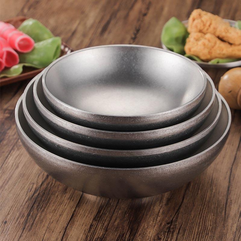 Vintage Nostalgic Stainless Steel Ramen Bowl Double Layer Dough Bowl Mixed Noodle Rice Soup Bowl Salad Bowl Cold Noodle Bowl