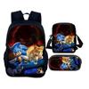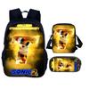 This Sonic 2 movie-themed backpack set features a durable polyester construction with a 20-liter capacity, measuring 15.7 inches in height. The three-piece design includes a main bag, shoulder bag, and pencil case, ideal for daily use by students and commuters. Designed for versatility, it supports weather-resistant protection, making it suitable for school, travel, or business outings. Wipe clean with a damp cloth to maintain its appearance.
