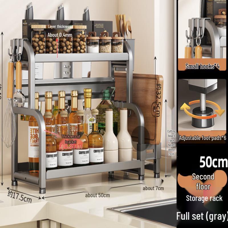 Youshu 50cm Two-Tier Countertop Kitchen Spice Rack with Knife Holder
