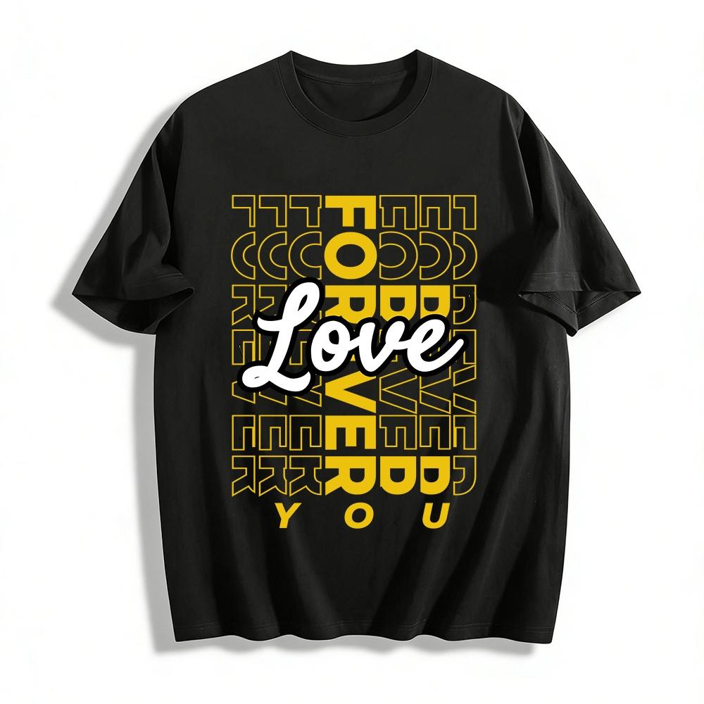 Vintage Love Letter Print Couple Tshirt Casual Loose Crew Neck Short Sleeve Top Pure Cotton T-shirt