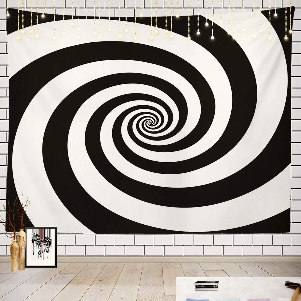 Hypnotic Spiral Tapestry Black White Optical Illusion Design Unique Wall Art for Bedroom Modern Decor Lover Gift