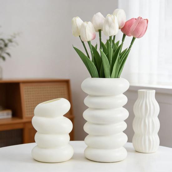 White Faux Ceramic Vase Minimalist Modern Small Flower Vase for Pampas Grass Decorative Vase for Home Office Table Decor Wedding Centerpiece