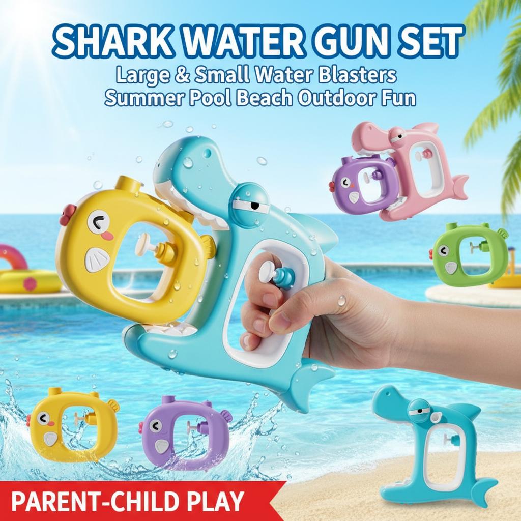 Shark Water Gun Set Large & Small Water Blaster Summer Outdoor Pool Beach Toys For Kids Parent-Child Squirt Gun Fighting Gift