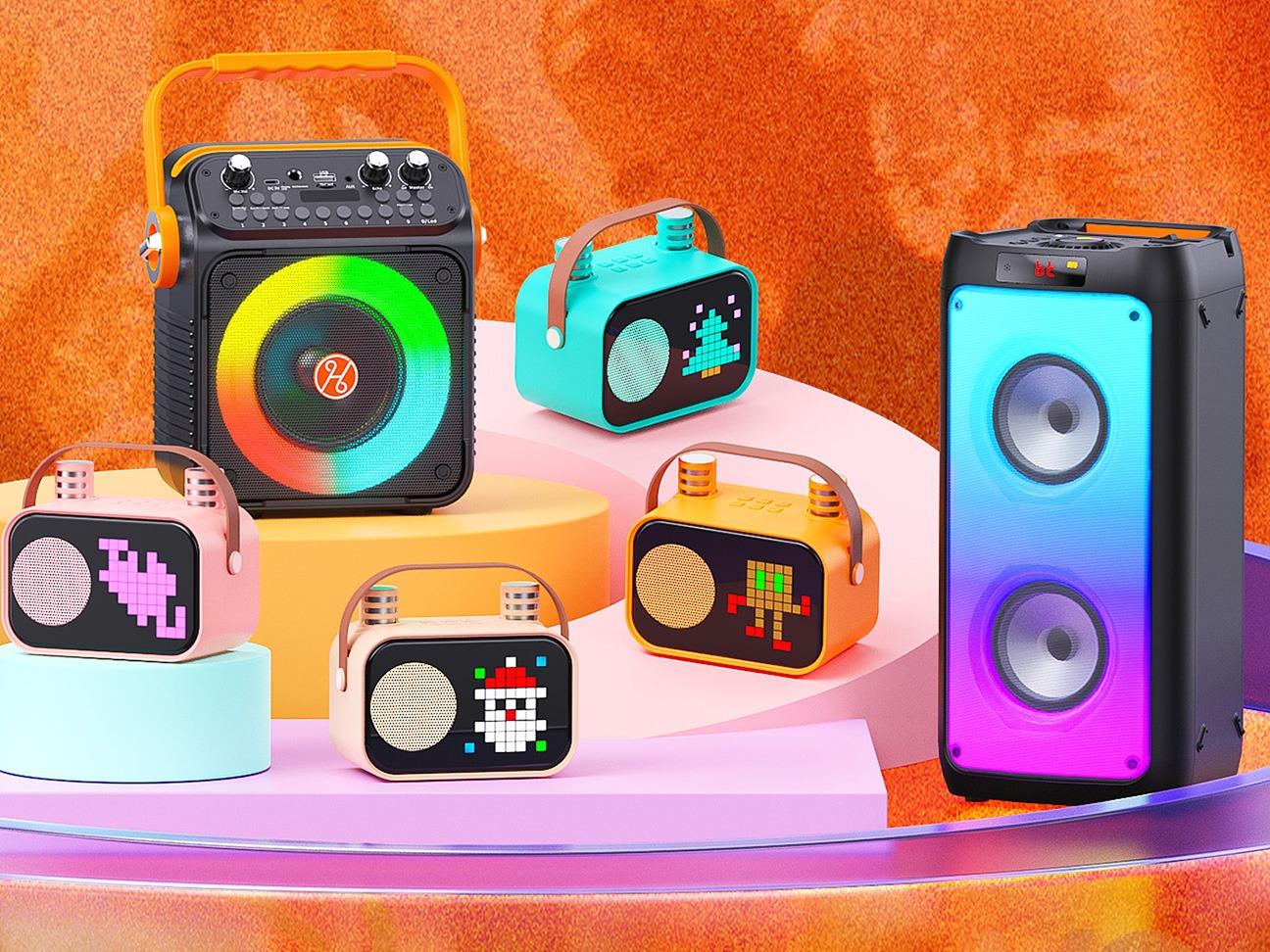 FanFun Karaoke Machine, Portable Bluetooth Speaker with 2 Microphones, RGB Party Light, Remote Control, T10-T