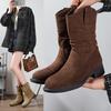 Large size snow boots women's 2024 autumn and winter new European and American foreign trade round head thick heel stacking boots cover mid-foot boots