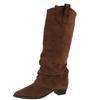 Fashion 2025 Fashion Design Black Pleated Women Knee High Boot Suede Autumn Winter Pointed Toe Square Heels Party Shoes Zapatos De Mujer