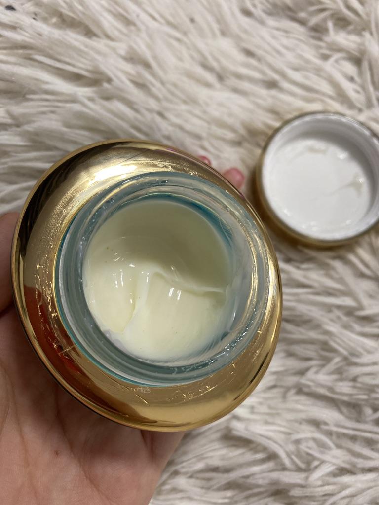 Koostis : Puhastatud vesi, glütseriin, butüleenglükool, tsetüületüülheksanoaat, tsetearüülalkohol, oktüüldodekanool, niatsiinamiid, tsüklopentasiloksaan, glütserüülstearaat, 1,2-heksaandiool, tsükloheksaandiool, tsükloheksaandiool, tsükloheksasiloksaanhappe vorm4,0,0, EG-diosulfoonhape meaa stearaat, dimetikoon, karnaubavaha, mangoseemnevõi, polüakrülaat-13, tsetearüülglükosiid, naatriumpolüakrüül Late, kolesterüül / behenüül / oktüüldodetsüülauroüülglutamaat, aroom, polüisobuteen, trometamiin, kofeiin, polümeeri glütserüül-3-alkrülaat / C10-akrülaat ine, vitamiin puuõli, polüsorbaat 20, dinaatrium ID, sorbitaanisostearaat, ksülüülglükosiid, glükoos, anhüdroksülitool, kuld (0,0015%, 15 ppm), ajalehtede ekstrakt, salvi lehtede ekstrakt, rosmariini lehtede ekstrakt, majoraani lehtede ekstrakt, sidrunmelissi ekstrakt, lavendlilehe ekstrakt , Matricaria lilleekstrakt, ksülitool, hüdrolüüsitud kollageen (0,01%, 100 ppm), alfa-isometüülioon, geraniool, heksüülkaneel, hüdroksütsitronell, linalul