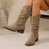 European and American large-size knight boots women's 2024 autumn and winter new medium tube thick heel foreign trade European women's boots 2025