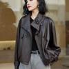 מעיל עור וינטג' לנשים סתיו וחורף מעיל בסגנון חדש בסגנון מערבי עם מעיל זוגי עבה