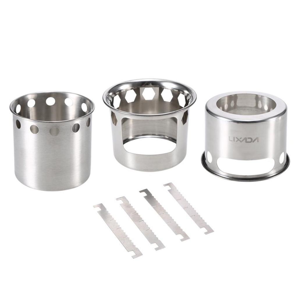 Lixada Hordozható, összecsukható fa kályha kültéri könnyű rozsdamentes acél piknik kemping főzőfa