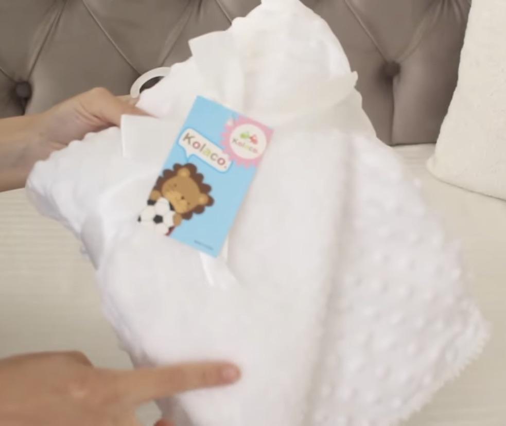 A blanket with very soft material for a baby or infant. Comes beautifully packaged and is just the right size, not too small. The color is the same as in the picture, light pink. Very pleased!