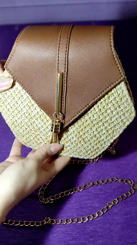 Yogodlns Szalmatáska nőknek Új divatos PU bőr kézitáskák Női nyári strand rattan táska