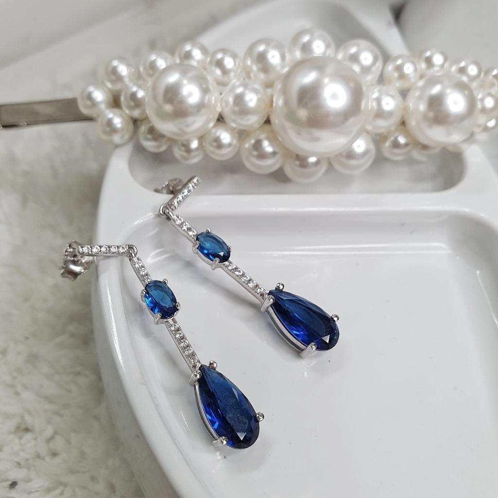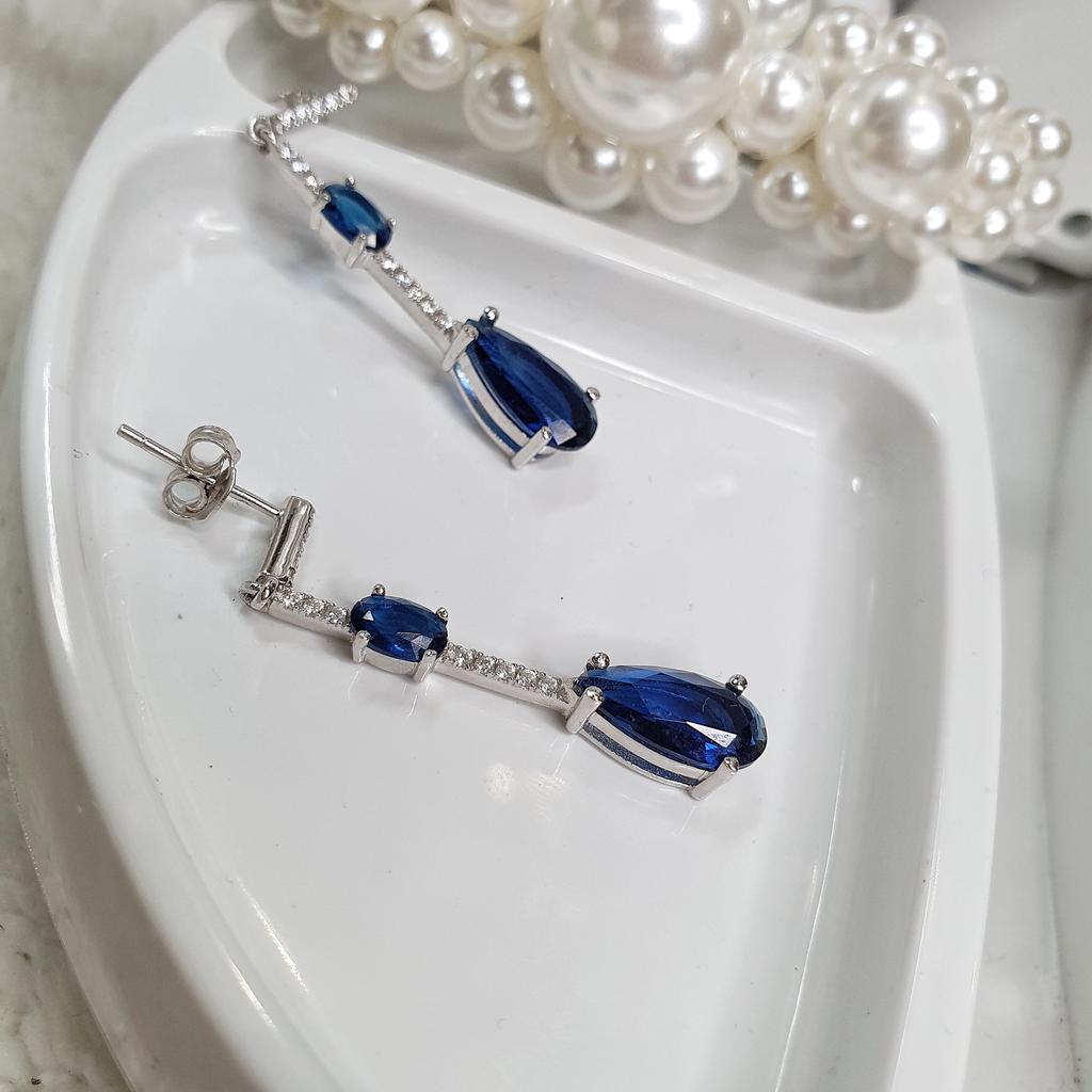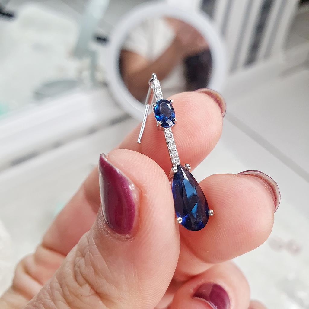 Kék Zafír Drágakő Antik Fülbevaló 925 Sterling Ezüst Fülbevaló, Boho Ezüst Ékszer Lógó Fülbevaló, Ajándékok Születésnapi Ajándékok Nőknek