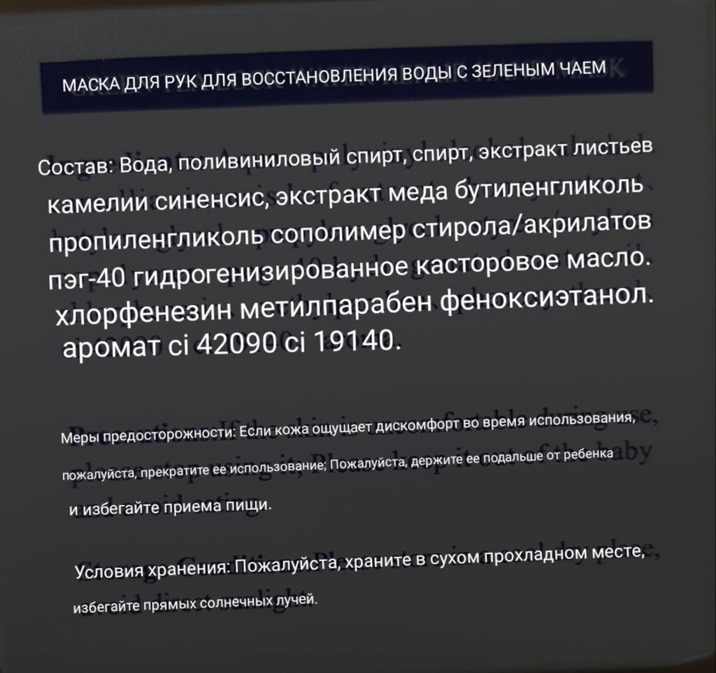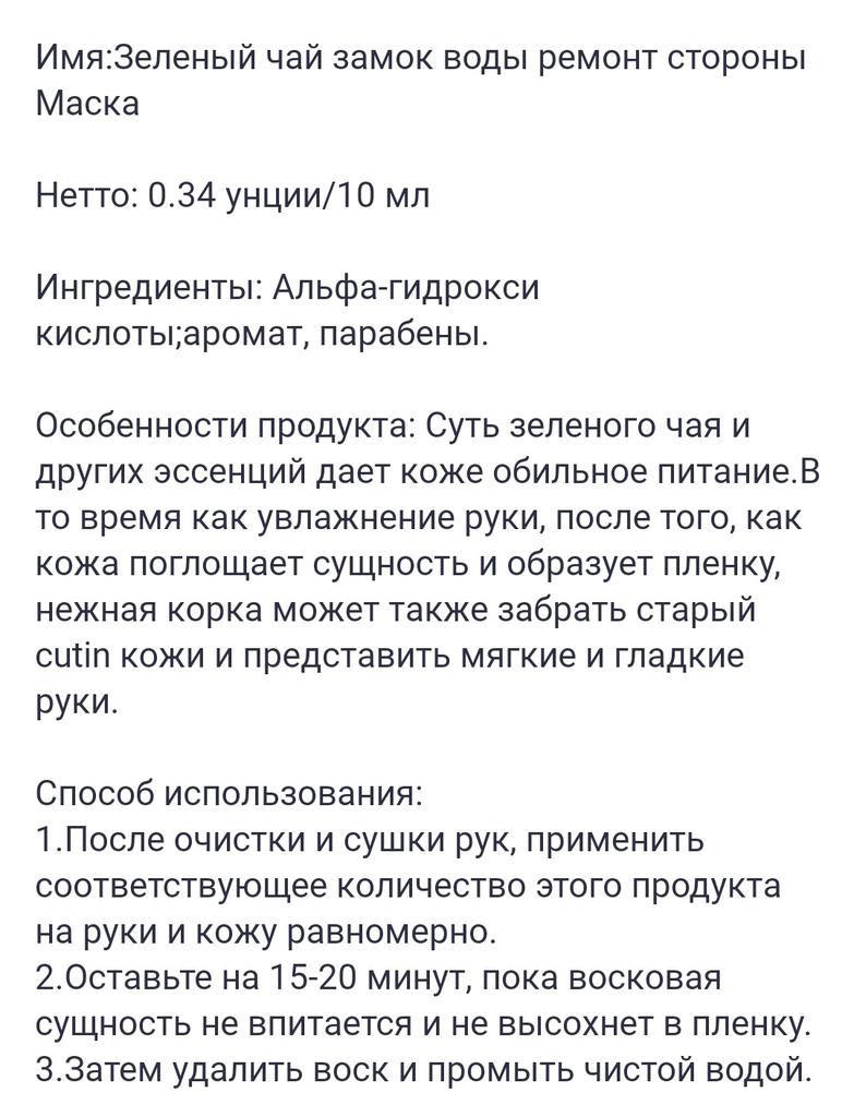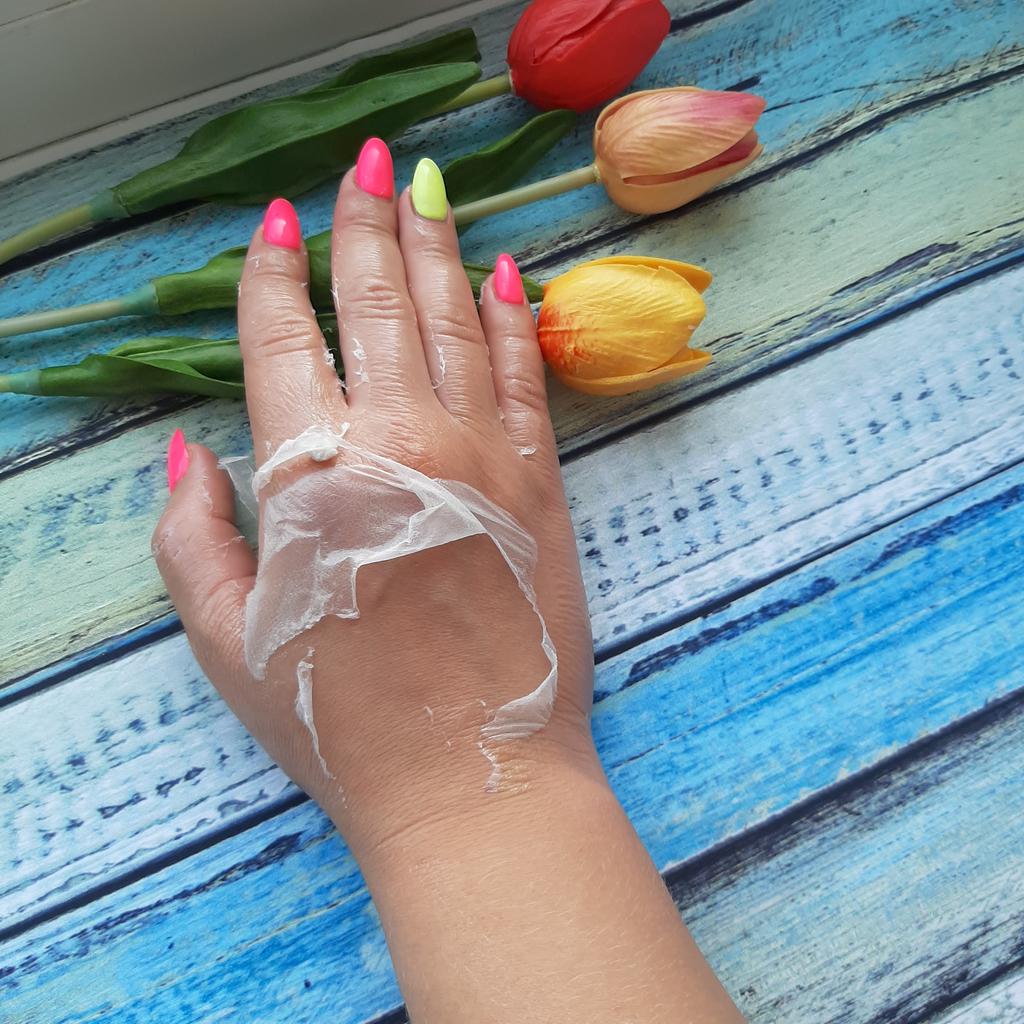 Really a very nice mask for the ✋️ hands.! I'm excited! The mask has a pleasant smell and can be easily applied evenly to the skin (hands).. ✅️nourishing ✅️Moisturizing ✅️smoothes your skin ✅️After the application you get a silky feeling The size 😊50 gr How to use🔅🔆Apply to clean skin on hands for 15-20 minutes and leave on until the mask absorbs and then you can easily remove it. A soft feeling after use is guaranteed. 🔝 It is further recommended!🔝🔝🔝🔝🍒5, stars out of 5! Thanks to the seller and Joom. The delivery to Germany took 4 weeks. The product was well packaged and arrived undamaged .🥰🥰