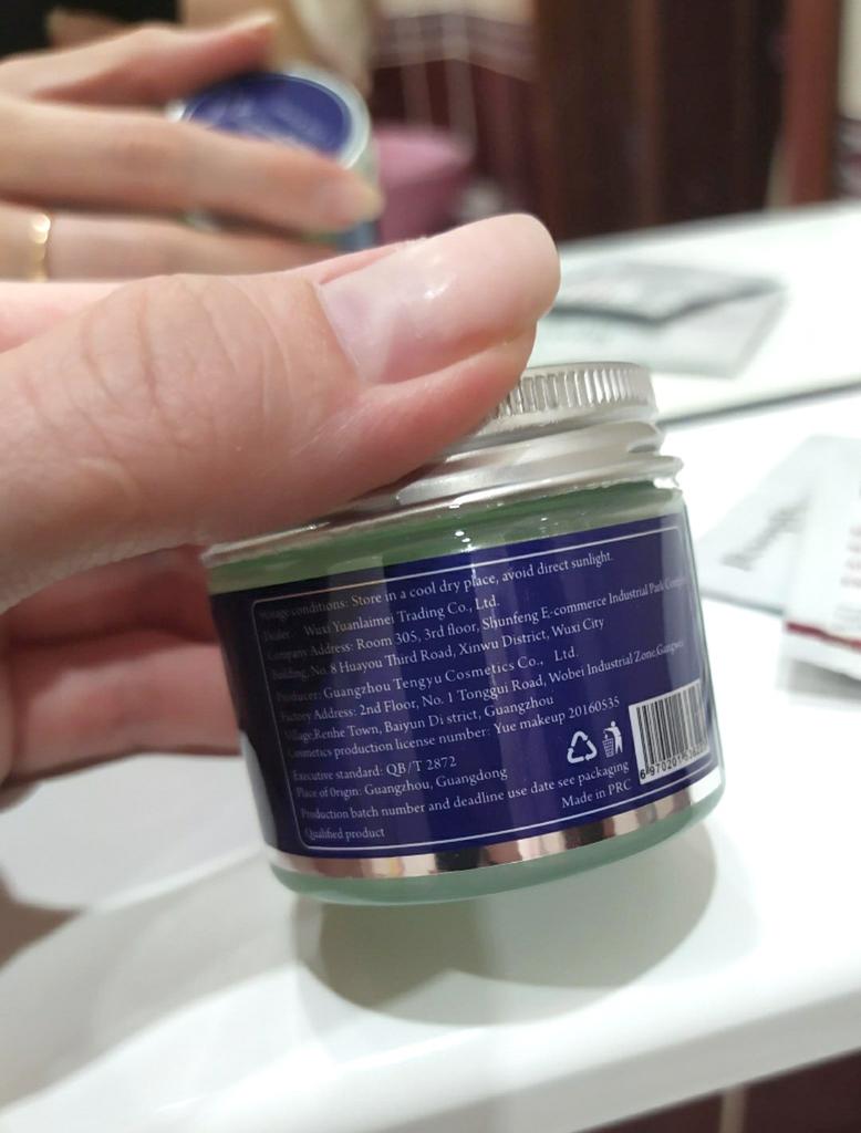 A krém 80%a kifolyt. A papír doboz teljesen össze ragadva. Híányzott a tégelyről a fém tető. A kézkrém teljesen használhatatlan. Az egész egy papír dobozban ragadt ragacsos borzalom. Sajnálatos módon teljesen használhatatlan mivel a papír doboz teljesen beleragadt. Nagyon sajnálom mert nagyon vártam. Viszont semmi esely, hogy egy kicsit is meg lehetne menteni.😢😢😢😢😢😢😢😢😢