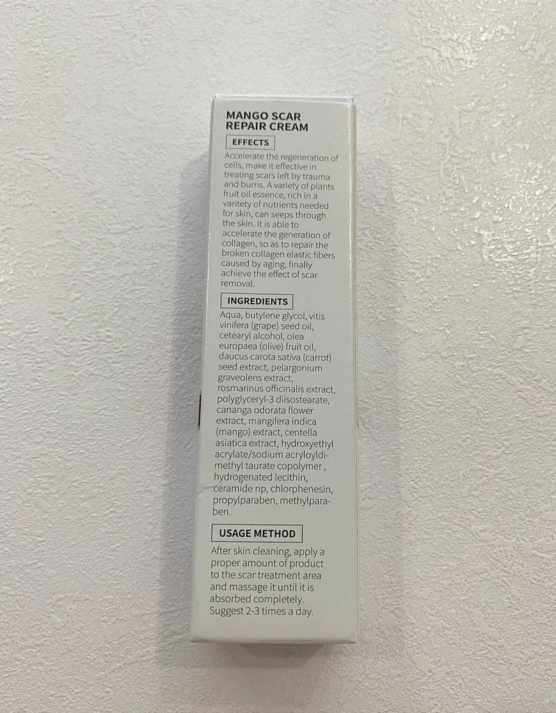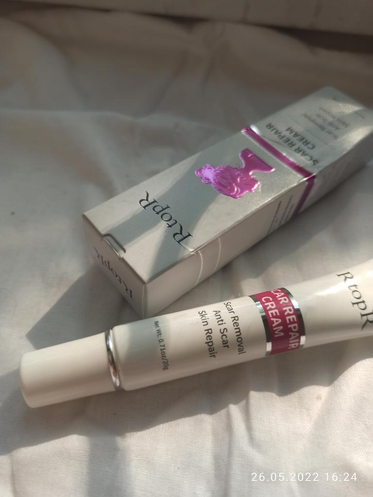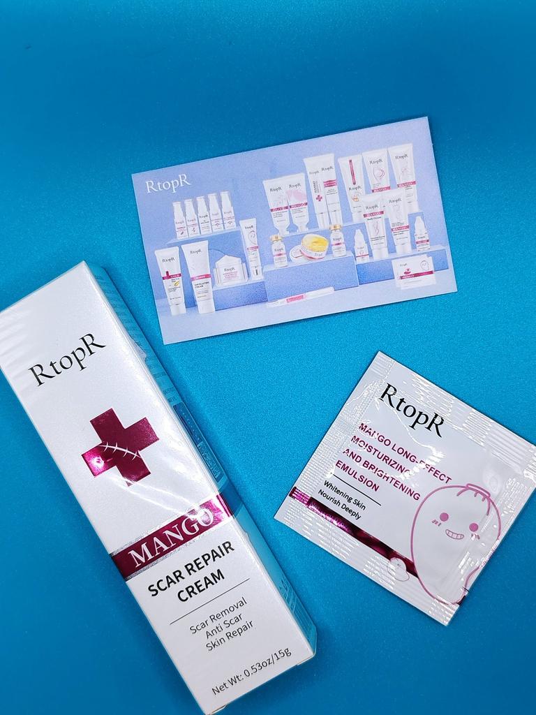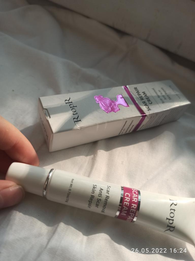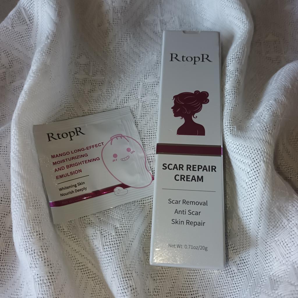 🌺 Scar Cream 🌺 I ordered it for acne scars. I hate it when acne is gone but it leaves its scar for months. I am looking for a good product to fade those away. Actually I ordered many from other brands. ODEO, MeiYanQoing, Mabrem and this one RtopR. I want to check their healing speed and make a comparison. I like this brand especially i like their mango cream texture and smell. 🌺 This cream is for all kinds of scars, like operation scars, traumatic scars, burns, acne scars. 🌺 This cream claims to accelerate regeneration of skin cells. I think it definitely worths to try. Total amount is 20gr.