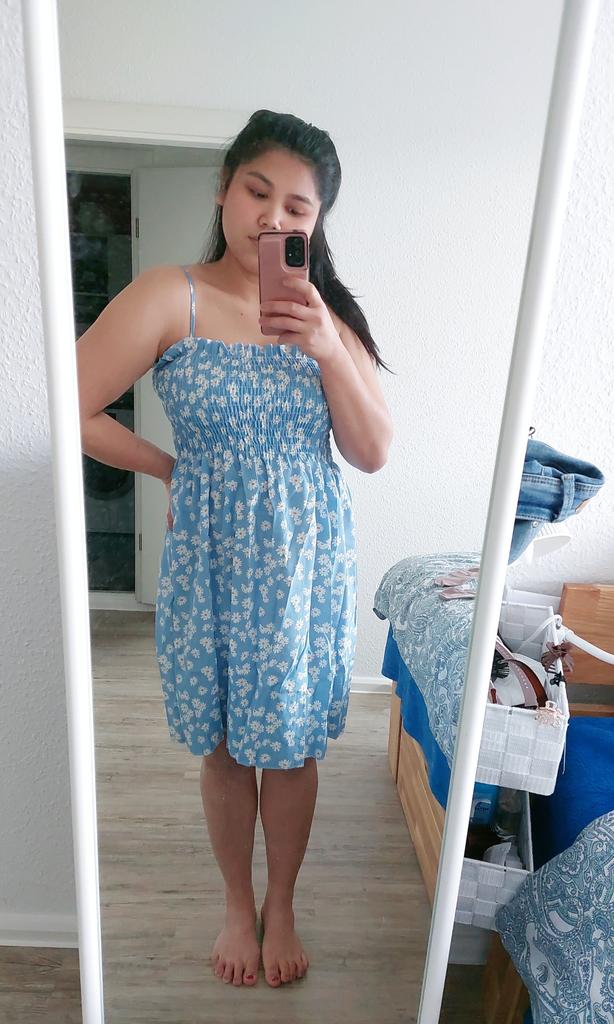 The dress itself is very cute, but unfortunately I received it in the wrong color. I ordered blue and received black. Black is not my favorite color so I was a bit disappointed but still wearing the dress. There may be an error in the seller's system, because when you choose the color that says "blue" the item in the picture is black 🤔 The same applies to the other colors. I find it confusing and leads to simply receiving a random color 🙄 Apart from the color, however, the dress is absolutely fine. It has elastic fabric in the bust, so it fits all sizes 😏 Because of the color, I give the seller 4 stars.