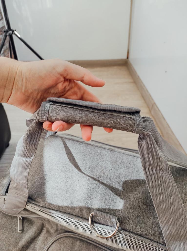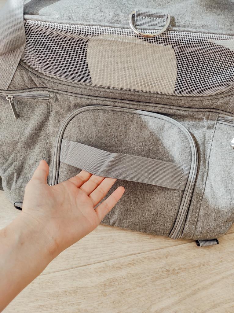 1. 4 HASZNÁLATI MÓD: Az állítható hosszúságú vállpánt és a bőröndrögzítő öv lehetővé teszi a termék kézitáskaként, válltáskaként, ideiglenes hátizsákként és poggyásztáskaként való használatát. 4 szállítási mód teszi a legbiztonságosabb és legkényelmesebb kisállattáskává utazás közben.