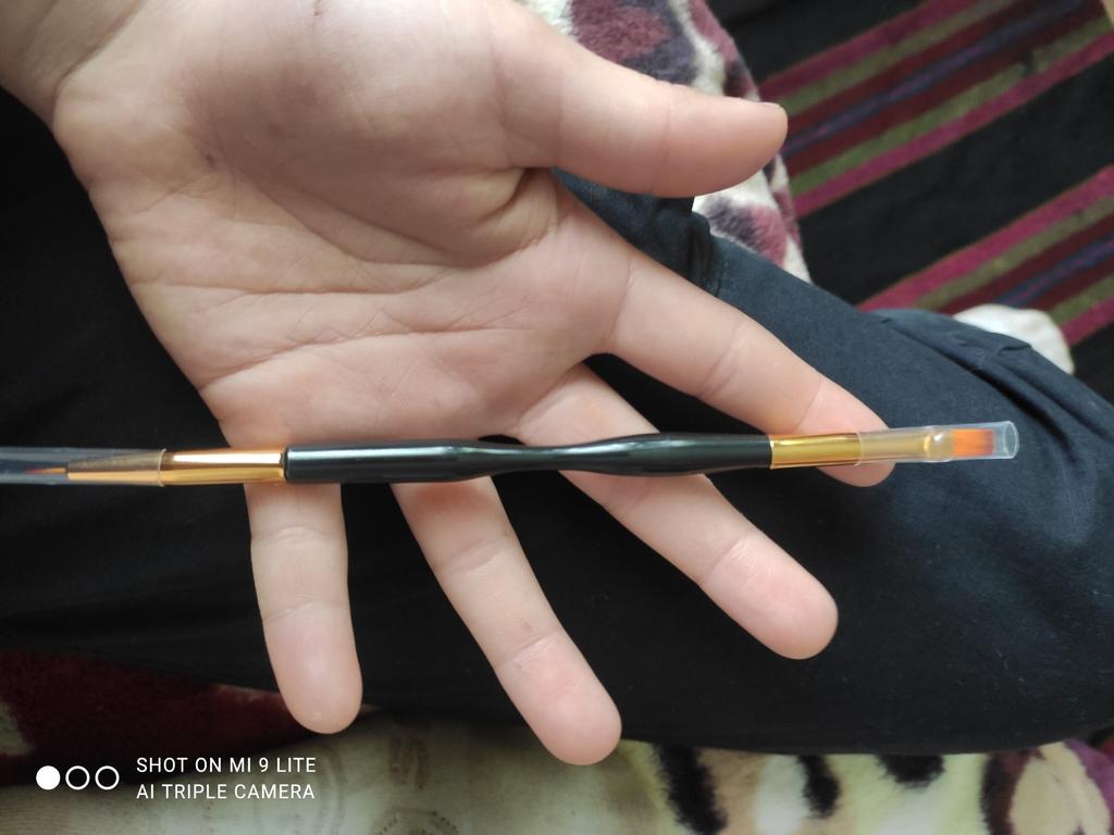 The brushes arrived in about three weeks. The set includes 3 double-sided brushes. On the one hand, we find super thin and precise brushes, of different lengths for decorating or painting under the cuticles, on the other hand, brushes ideal for gel / acrylic / aryl gel. Thanks to the profiling, they are comfortable to hold in the hand.