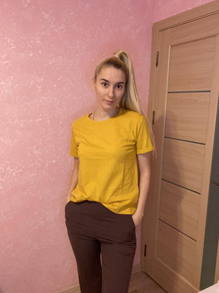 This is your perfect basic t-shirt with 100% fabric.Very comfortable,breathable,can be worn with many styles during the winter or the summer.The shop had selection of many beautiful colours and sizes,love bright colours so went for yellow/ombre colour.I'm wearing size xl on 103/85cm,perfect quality and quick delivery(3 weeks).Happy Shopping!