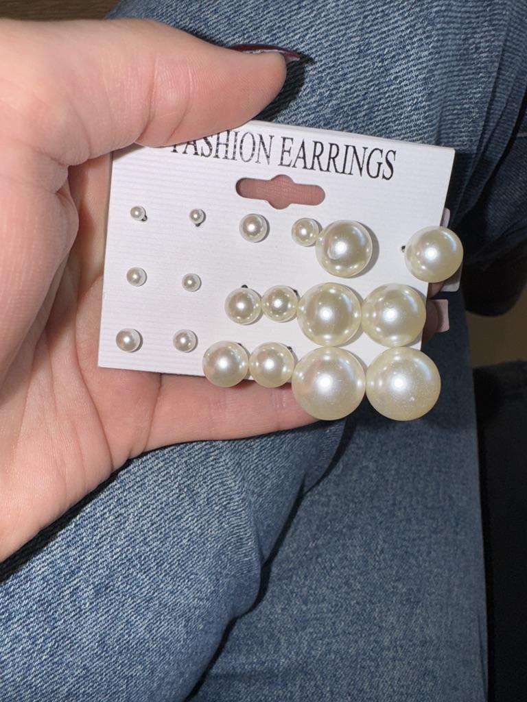 Divat fekete-fehér kerek gyöngyös fülbevalók 9 pár/szett nőknek, retró egyszerű, több méretű fülbevalók, esküvői ékszerek