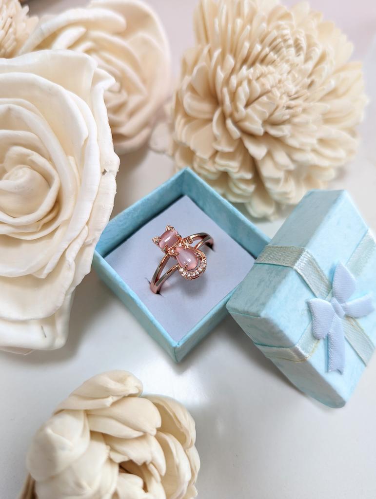BELLA BOX Cat Design Létrehozott rózsaszín kvarc ékszergyűrűk női esküvői partira, finom ékszergyűrű