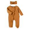 Őszi tavaszi csecsemő újszülött kisbabának szolid, aranyos hosszú ujjú, cipzáras jumpsuite puha babaruha 0-24M egy darab