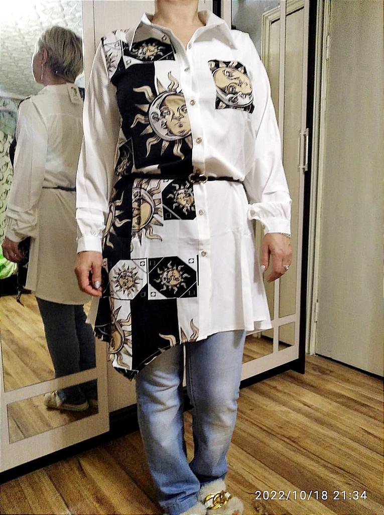 [Fancy Blouse] 🌿 delivery: I received the item 20 days after ordering. That's fine. size: I have the blouse in size L ordered. I wear size XS/S and it fits me perfectly. So order a little bigger. optics: The blouse is a long blouse or can also be used as a dress. It is white/black with sun applications. It has a collar and a black belt is included. Materials/Quality: The material is soft and not too thin. It's durable. It still looks good after washing. However, it is not non-iron. I think the quality is great. The blouse is absolutely wonderful, I really like it. 💕