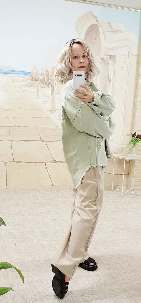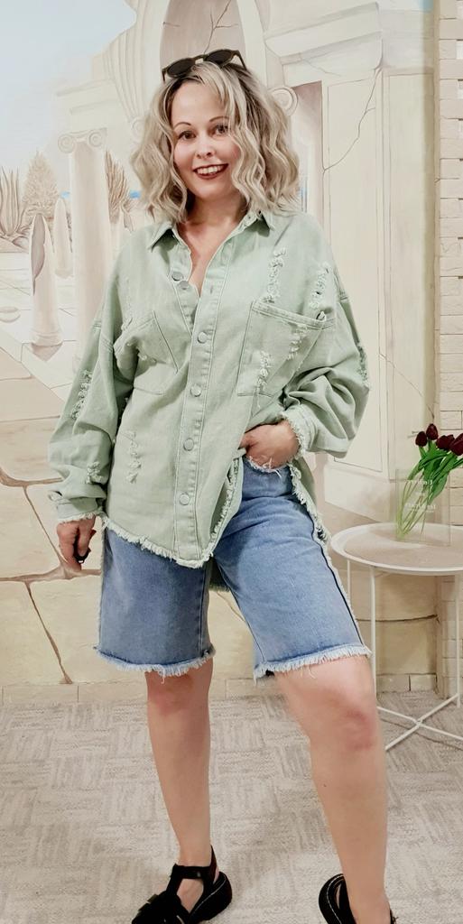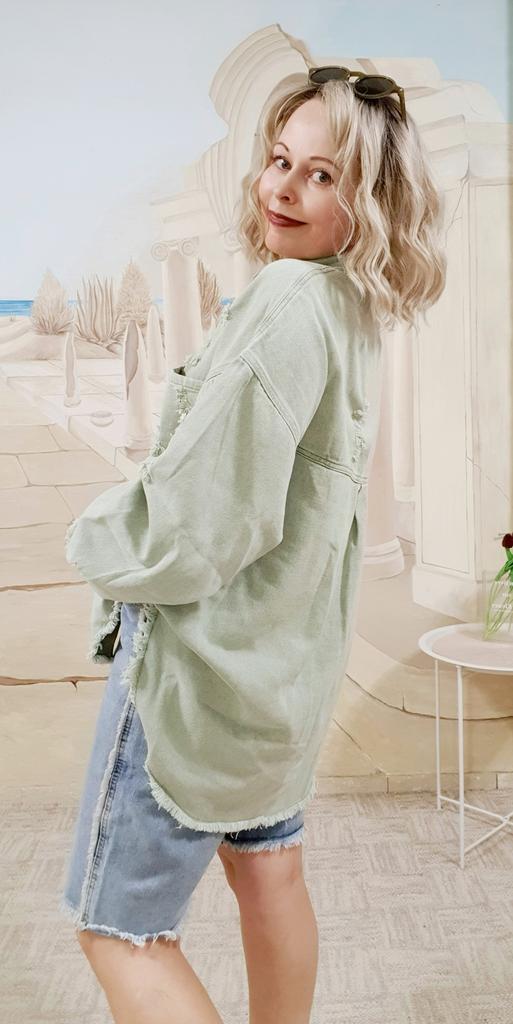 Női farmerdzseki szakadt, lehajtható galléros hosszú ujjú felsők zsebekkel, egysoros bojtkabát, bő felsőruházat