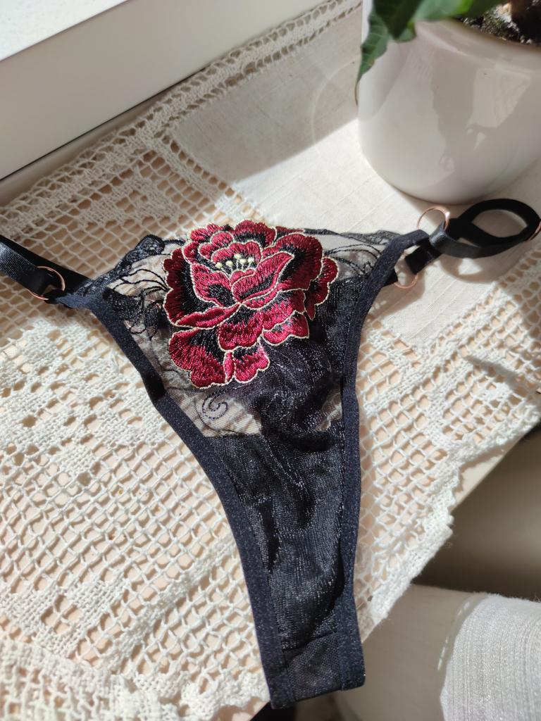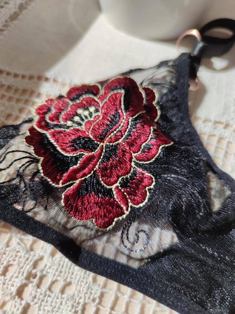 Női G-zsinóros kötés, karcsúsított, csábító, elegáns, vékony, intim virághímzés nászútra