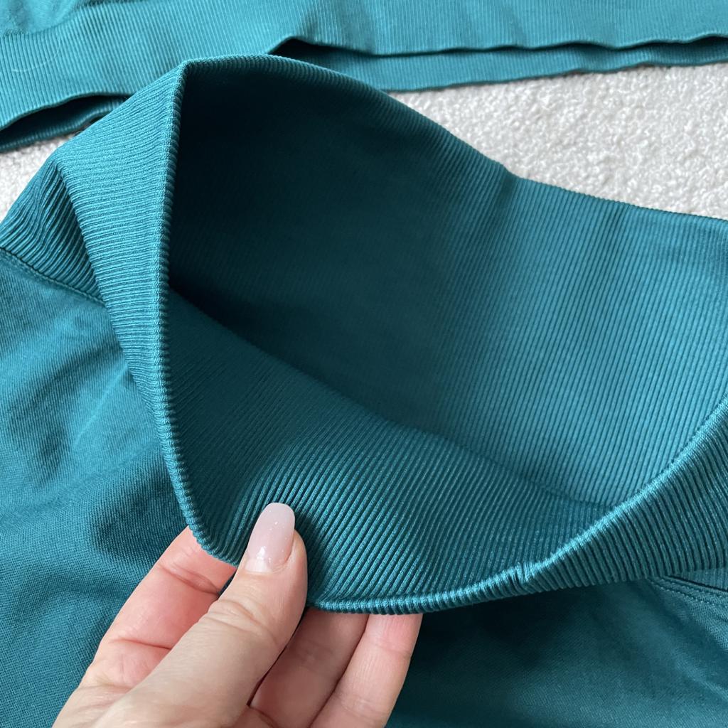 Női varrat nélküli kötött őszibarack nyakú, egyszínű, hosszú ujjú csípőízű jóga sportruha, futó fitnesz