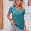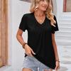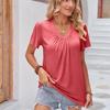 Nyári női póló, egyszínű, redőzött V-nyakú, bő póló felsők fodros ujjakkal