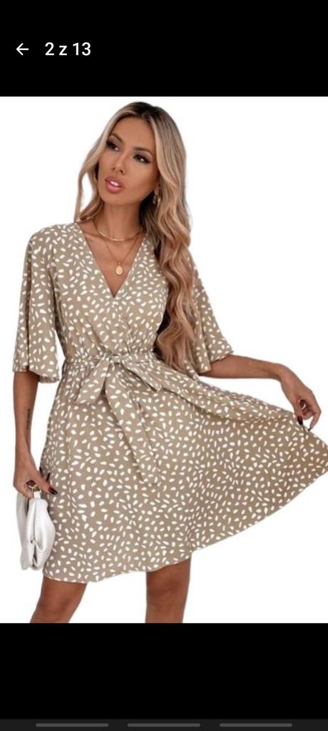 Női divat Új, népszerű rövid szoknya Európában és Amerikában V-nyakú, rövid ujjú derékpánt Sokoldalú, buborékos ujjú, nagy lengőruha S-XL